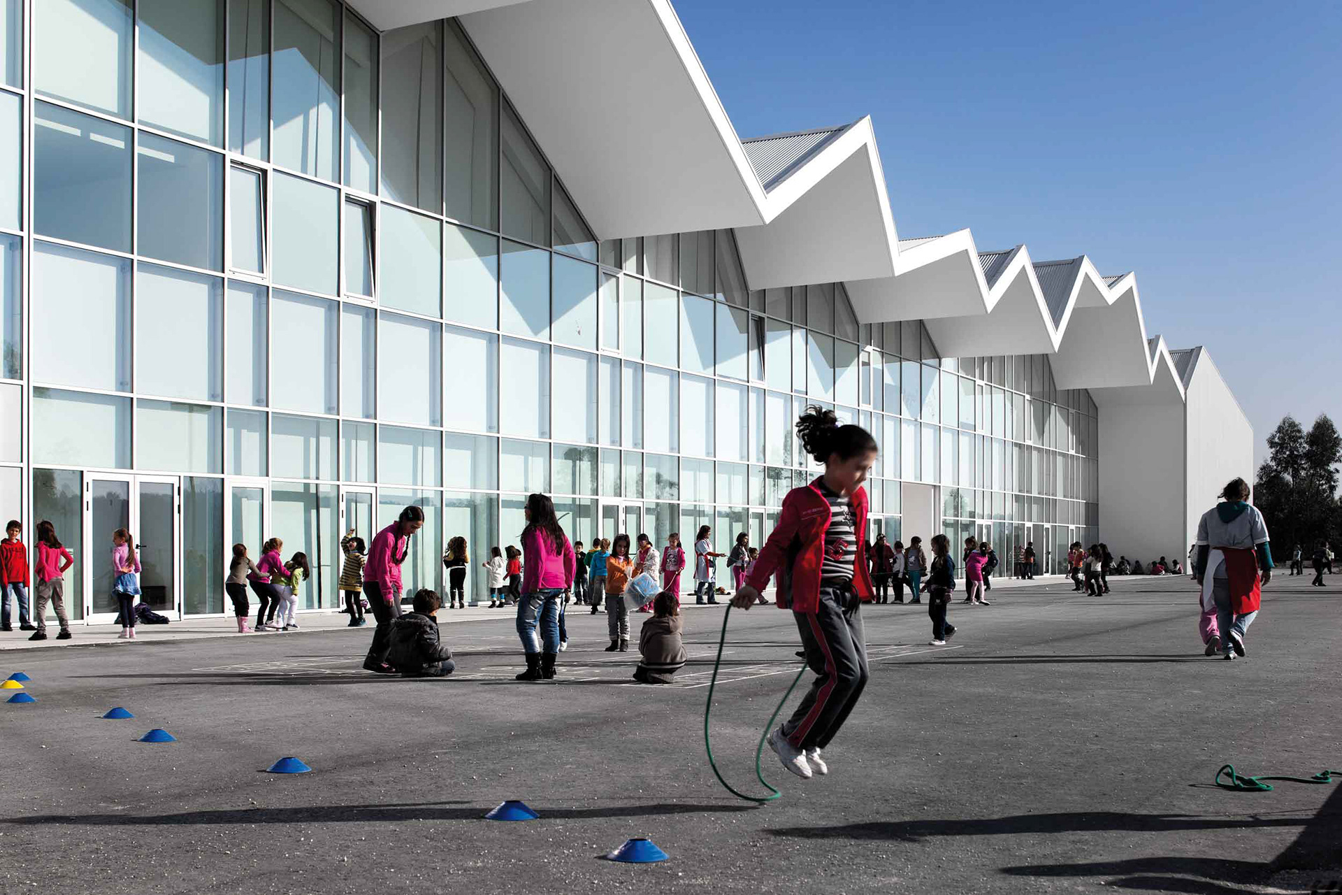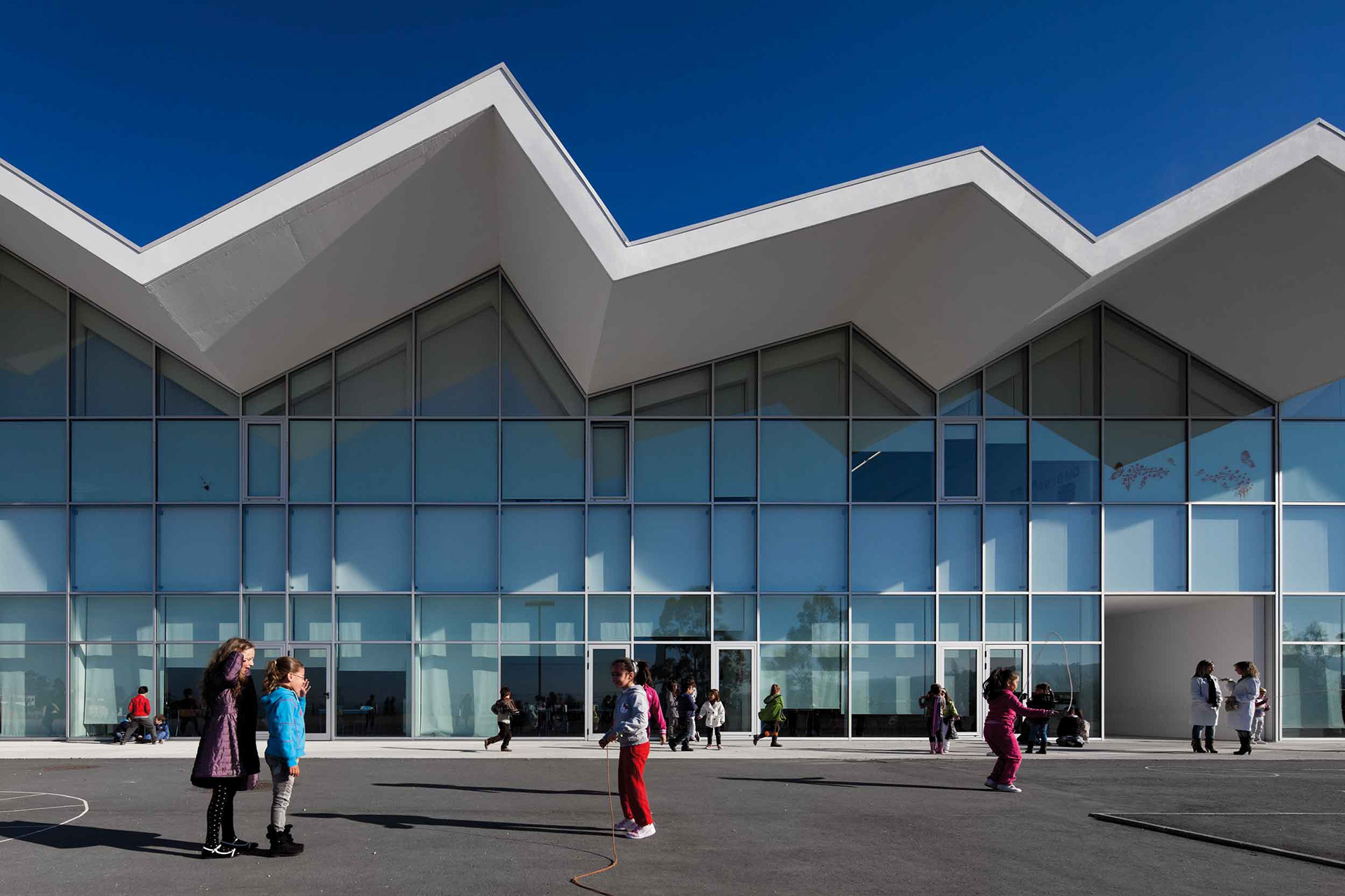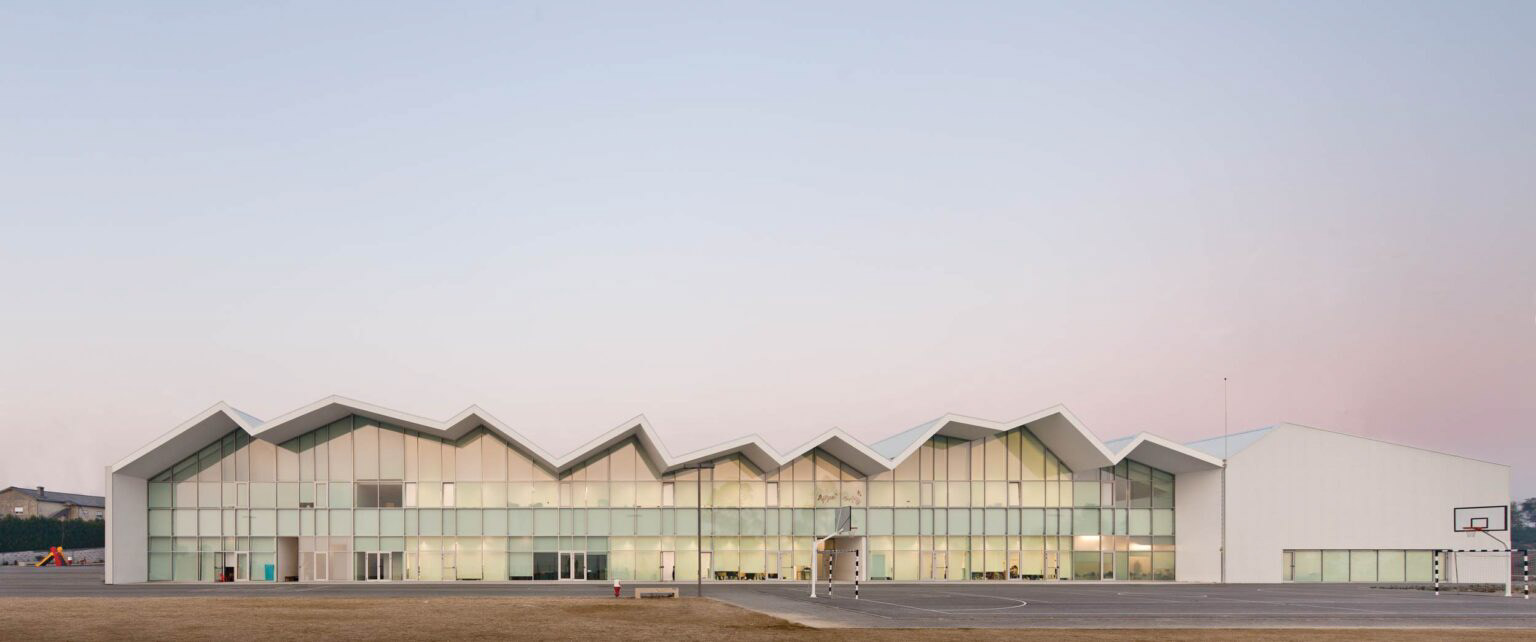 Assente num promontório, com uma vista única da sua envolvente, encontra-se a escola de Vilela. Como um templo, este edifício tem uma forte presença no ambiente construído, dando-lhe estrutura e ponto de referência. Dada a localização e o seu destaque na paisagem, o desenho desta escola foi influenciado por um desejo de transparência. Foi assim concebido como um corpo de vidro que é dominado por uma cobertura sinuosa, que simultaneamente unifica, integra e caracteriza toda a estrutura.Com seu desenho marcantemente dramático, esta escola representa a busca por um grau de desmaterialização da estrutura. Isto é conseguido através do uso do vidro, que cria uma linha de luz e sombra flexível, quase gráfica, que tipifica toda a fachada desta escola.Tem uma linguagem própria que se afasta da necessidade de consenso e passividade. O objetivo é alcançar uma escola que se destaque, um espaço ativo, aberto à participação e à mudança, estimulando, desenvolvendo habilidades e despertando sentimentos. É um espaço flexível, aberto à comunidade local e sua futura apropriação.