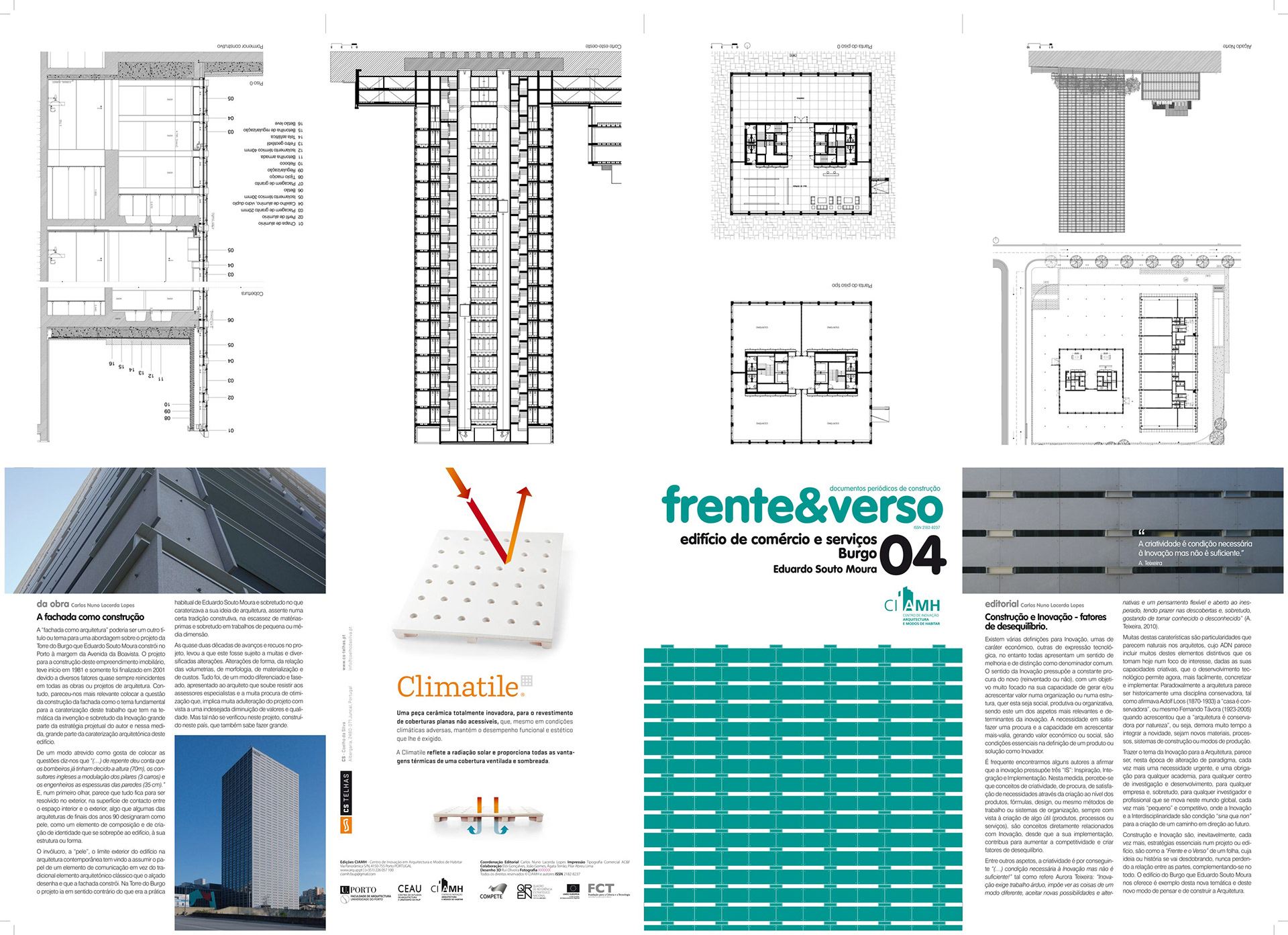 “Frente & Verso” vem a público como um documento periódico sobre construção e inovação em Arquitetura. Para além da investigação sobre a temática da “Arquitetura e Modos de Construir” através da análise de obras construídas em diversos tempos e lugares, procuramos divulgar os diferentes métodos de conceber a arquitetura e sobretudo dar a conhecer a necessária e cada vez mais fundamental ligação (F. Távora), correspondência (A. Siza) ou coerência (E. Souto Moura) entre os modos de projetar e os modos de construir. Será essencialmente sobre Arquitetura e Modos de Construir que esta publicação tratará, trazendo para o debate alguns dos aspetos concretos, físicos e materiais da arquitetura, do modo de a construir, e dos elementos necessários para uma qualificada passagem do desenho à “obra”.