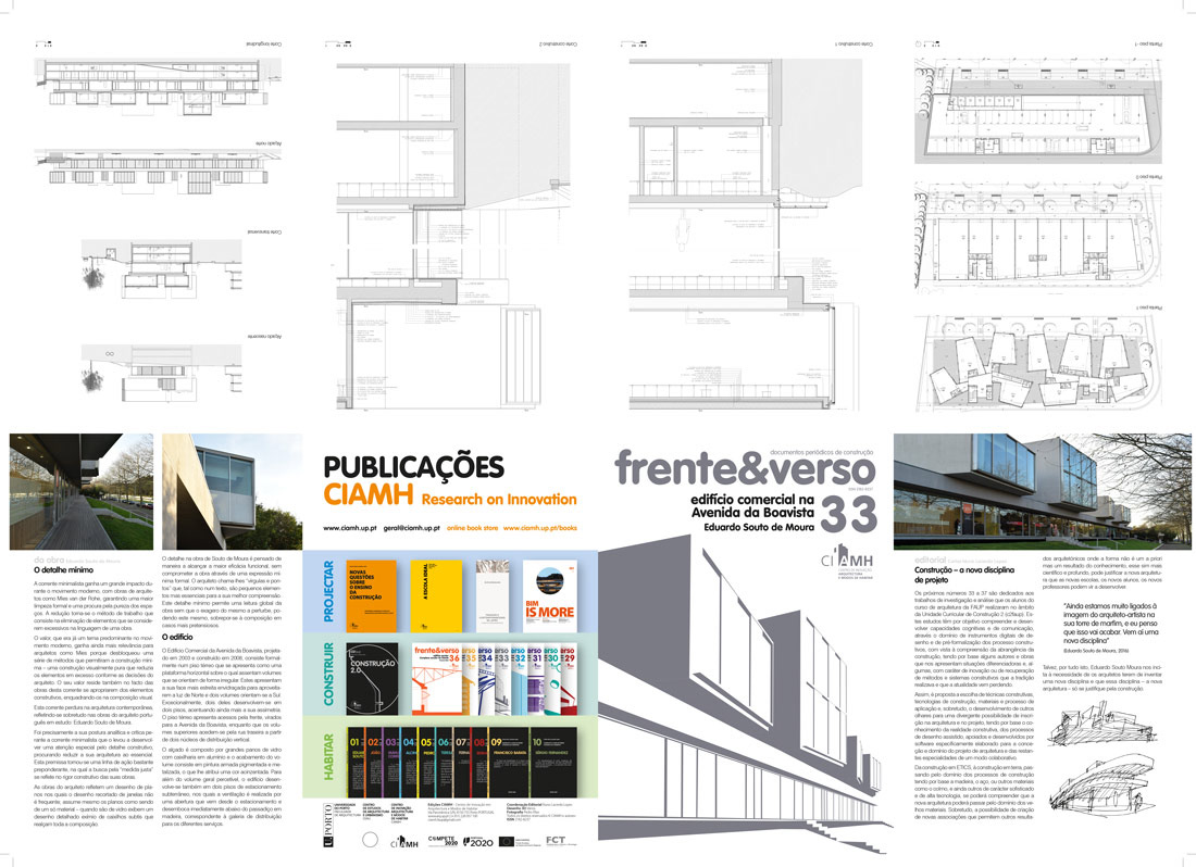 “Frente & Verso” vem a público como um documento periódico sobre construção e inovação em Arquitetura. Para além da investigação sobre a temática da “Arquitetura e Modos de Construir” através da análise de obras construídas em diversos tempos e lugares, procuramos divulgar os diferentes métodos de conceber a arquitetura e sobretudo dar a conhecer a necessária e cada vez mais fundamental ligação (F. Távora), correspondência (A. Siza) ou coerência (E. Souto Moura) entre os modos de projetar e os modos de construir. Será essencialmente sobre Arquitetura e Modos de Construir que esta publicação tratará, trazendo para o debate alguns dos aspetos concretos, físicos e materiais da arquitetura, do modo de a construir, e dos elementos necessários para uma qualificada passagem do desenho à “obra”.
