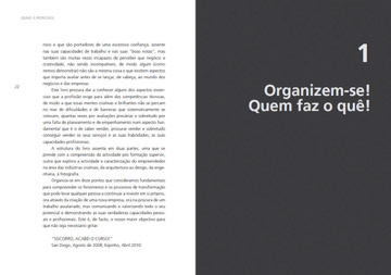 A estrutura do livro assenta em duas partes, uma que se prende com a compreensão da atividade pós formação superior, outra que explora a atividade e caracterização do empreendedor na área das indústrias criativas, da arquitetura, do design, da engenharia, da fotografia até à comunicação.